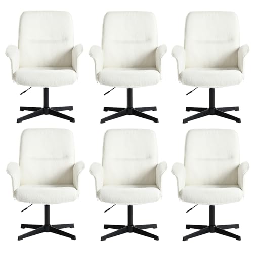 MEUBLE COSY Set med 6 Svängbar kontorsstol höjdjusterbar toalettstol sittbord i tyg Bouclé för studie sovrum, vit, metall, 66 x 63 x 82-94 cm, 6 st