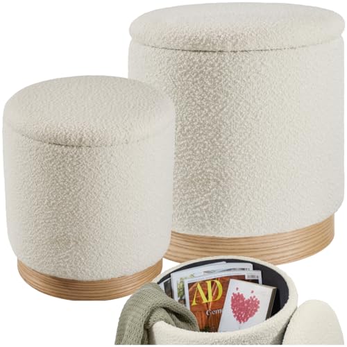 tectake® 2 Mysiga Sittpallar Set med Bouclé-tyg, Stapelbara Pallar, Pall med Förvaring för Filtar och Hemtilbehör, Sittpall i Skandinavisk Stil, Fotpall med Avtagbart Lock, Ingen Montering