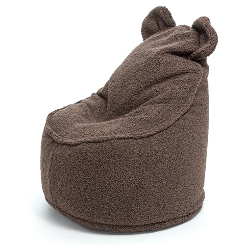 Ecopuf Yoghi | Fåtölj sittsäck med stora öron i Bouclè-tyg och kantsömmar | Avtagbar puff, ryggstöd hög | Sittsmurf eller ottoman Sittplats Sittplats Lounge Vaddering Polystyren bollar