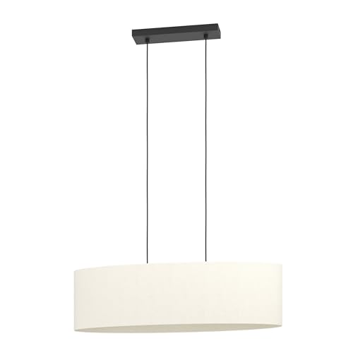 EGLO Febres Hänglampa, Taklampa Över Matbord, Oval Matsalslampa Av Bouclé Tyg, Metall I Svart Och Textil I Vitt, E27 Sockel, 78 Cm