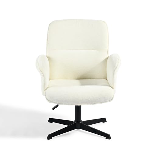 MEUBLE COSY Justerbar höjd svängbar kontorsstol toalettstol skrivbord bouclé tyg sittplats för studie sovrum, vit, metall, 66 x 63 x 82-94 cm