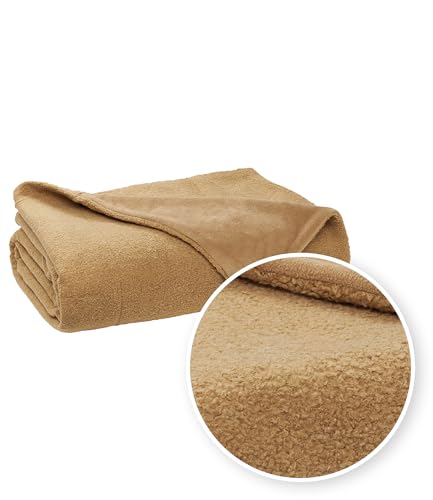 MEYCO Home Bouclé pläd gosig filt (högkvalitativ, mjuk filt, mysig och stil, tillverkad av lyxigt bouclé-tyg, för soffa och säng, 130 x 170 cm), tofs