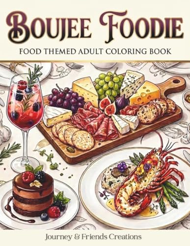 Boujee Foodie Food Themed Adult Coloring Book: 40 Coloring Illustrations with Full-Color Reference Pages