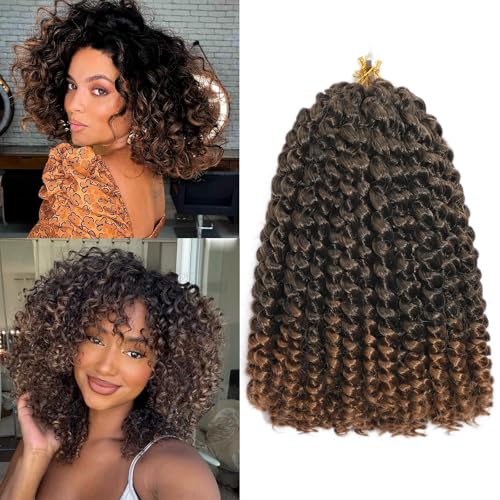 QUEENTAS 3-pack virkade hår för kvinnor förlängningar, 20 cm (8 tum) Curl Bounce Curl Curly Crochet Hair Ombre flätat hår 36 rötter (8 tum, #1B/27)