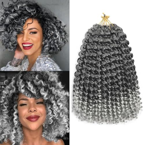 Jamaican Bounce Crochet Hair 20 cm (8 tum) 16 rötter 5-pack korta goGo lockigt virkade flätor jumpy vägg curl virkad hårförlängning för svarta kvinnor (Tgrå #, 8 tum)