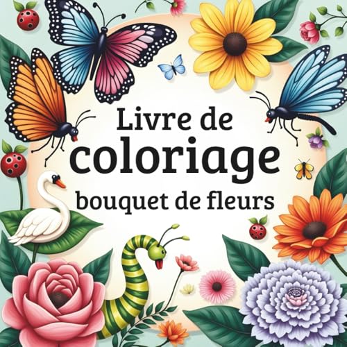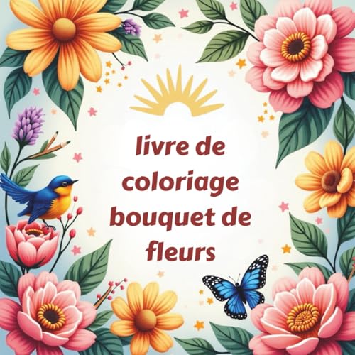 Livre de coloriage bouquet de fleurs, pour adultes , Motifs floraux élégants à colorier