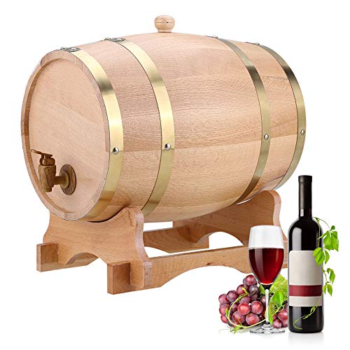 Oak 10L/5L Practical Durable Vintage Wood Oak Wood Wine Dispenser with Wood Stand for Whiskey Bourbon Tequila Vinegar Beer 10L