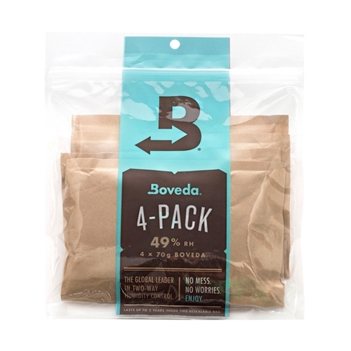 Boveda förvaring örtväxter | 58% RH 2-vägs fuktighetskontroll | Storlek 67 upp till 450 gram | Förhindrar att terpenerna torkar eller möglar | 4 återförslutningsbara påsar