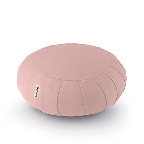 basaho CLASSIC Zafu Meditationskudde | Ekologisk Bomull | Boveteskal | Avtagbart Tvättbart Överdrag (Ljusrosa)