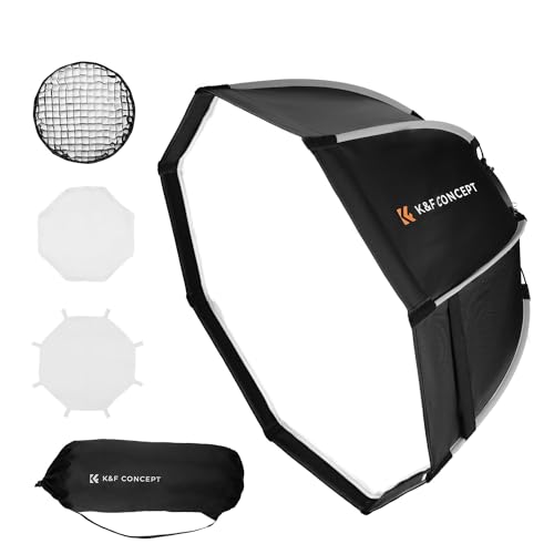 K&F CONCEPT 55 cm åttkantig softbox, snabbfrigörande Bowens-montering softbox med vaxkaknät, ljusdiffusor, bärväska, för fotografering studio Speedlite Flash och Monolight