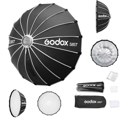 Godox Softbox Godox S85T 85 cm/33,5 tum snabbfrigörande paraply, softbox, Bowens-fäste med avtagbara främre och inre diffusorer för fotografi, livestreaming och resor