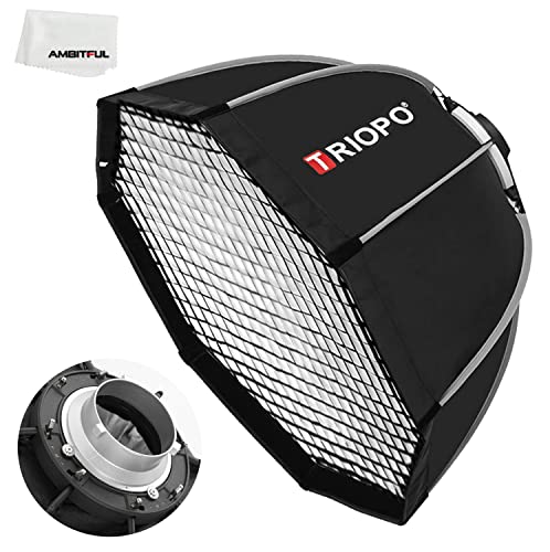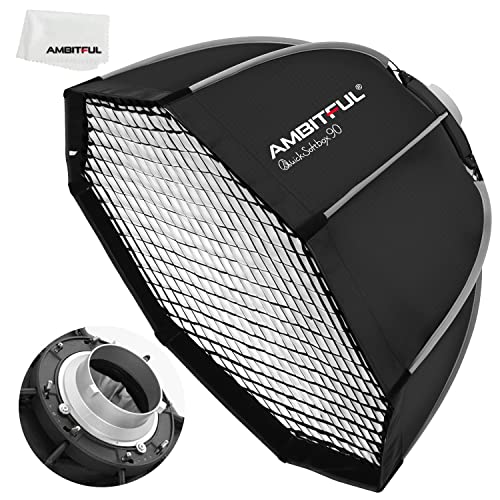 AMBITFUL Bowens Mount Softbox snabbinstallation softbox + vaxkaka rutnät för studio stroboskop utomhusfotografering (90 cm / 35,4 tum oktagon)