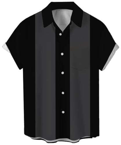 Poker- och bowlingskjorta i vintagestil för män, 1950-tal, retro, kortärmad skjorta med knäppning, Hawaii-skjorta, grå ochsvart, 6XL