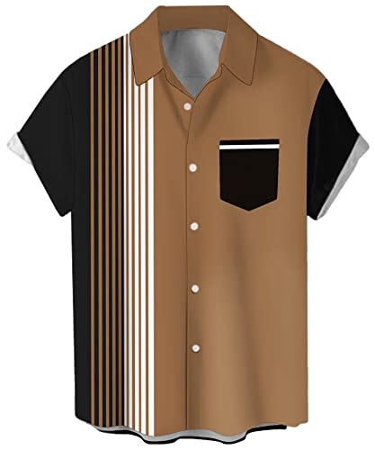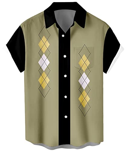 Herr vintage bowlingskjorta kortärmad button down-skjorta vintage 1950-talet rockabilly läger män bowlingskjortor vardaglig sommar (TYP - 3, M)