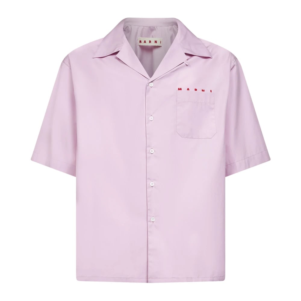 Marni, Skjortor , Herr, XS, Bomull, Poplin Bowling-skjorta med Tittande Logotyp