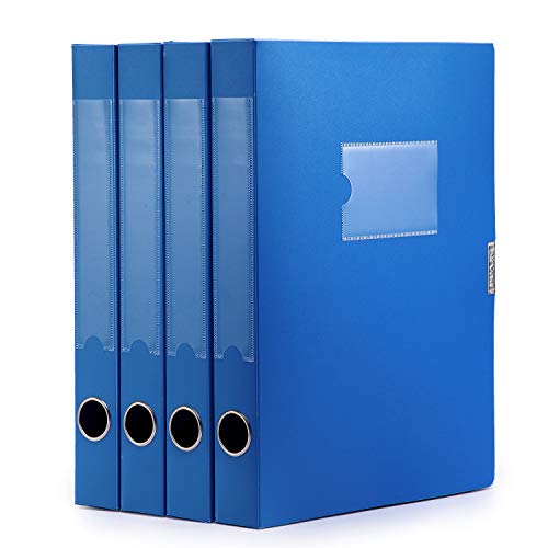 A4 Storage File Boxes Plastic Archives Cases with Lid, File Folder Organizer Document Filing Box for Office, Letter Size Paper,31×4×24 cm, Blue(Pack of 4)