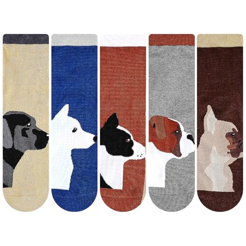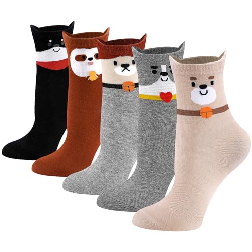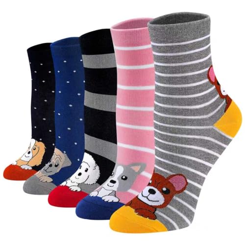 SukModen Roliga Damstrumpor – 5 Par Färgglada Kattstrumpor & Djurmönstrade Strumpor med Katt & Hund, Söt & Rolig, Bomullsgåva Box för Födelsedag & Jul, Storlek 35-42