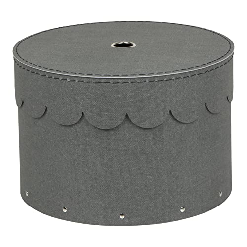 BIGSO BOX OF SWEDEN WILMA Uppsättning av 2 runda förvaringslådor med lock – förvaringsbox med lock för kläder, leksaker etc. – dekorativ rund låda av fiberplatta och papper i linneutseende – grå