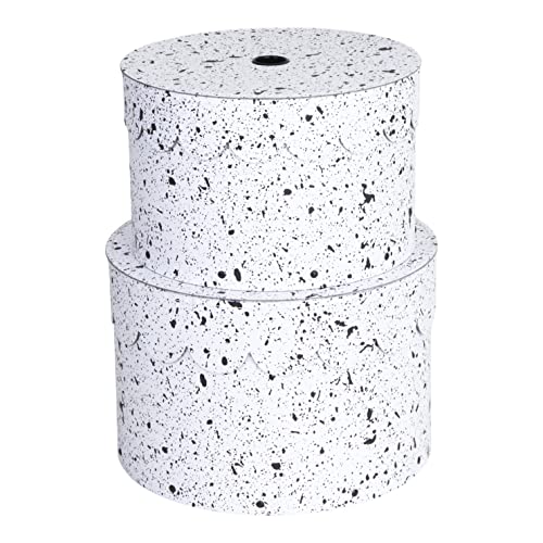 BIGSO BOX OF SWEDEN WILMA Uppsättning av 2 runda förvaringslådor med lock – förvaringsbox med lock för kläder, leksaker etc. – dekorativ rund låda av fiberskiva och papper – svart spräcklig