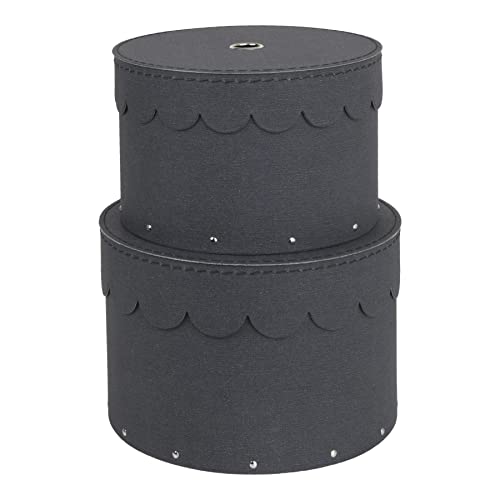 BIGSO BOX OF SWEDEN WILMA Uppsättning av 2 runda förvaringslådor med lock – förvaringsbox med lock för kläder, leksaker etc. – dekorativ rund låda av fiberplatta och papper i linneutseende – svart