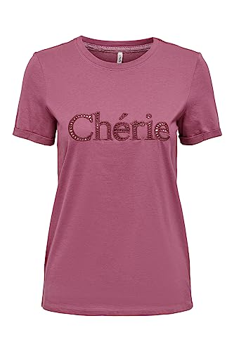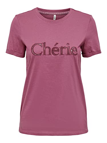 ONLY Dam ONLHUNIE REG S/S FOLD-UP Box JRS Top, Rose Wine/Print: Cherie, M, Ros vin/tryck: cherie, M