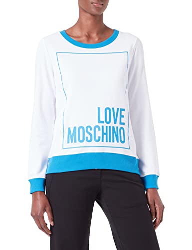 Love Moschino Dam logo box Print and Color Contrast Ribs sweatshirt, Vit blå, 44