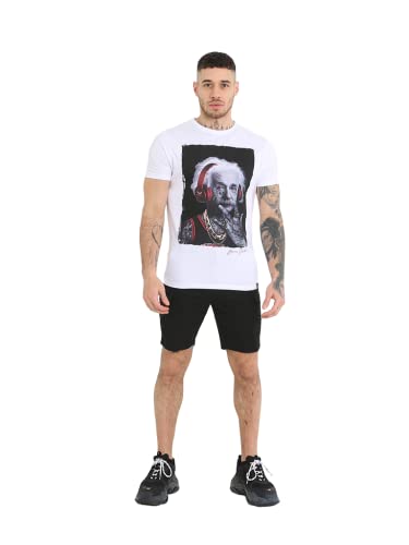 Brave Soul Mäns T-shirt Kortärmad och Neck Box med Einstein Print Vit, Storlek L, Vit, XL