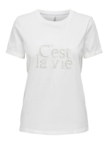 Bestseller A/S Dam ONLHUNIE REG S/S FOLD-UP Box JRS Top, Cloud Dancer/Print: Vie, L, Molndansare/tryck: vie, L