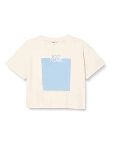 NAME IT Girl's NKFLARIsse SS Boxy Top Box T-shirt, smörkräm/tryck: Serenity Print, 122