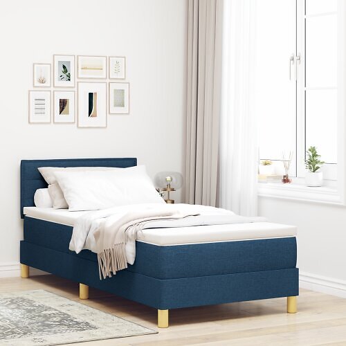 vidaXL Box Spring Säng med Madrass Blå 100x200 cm Tyg