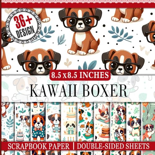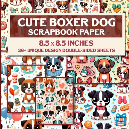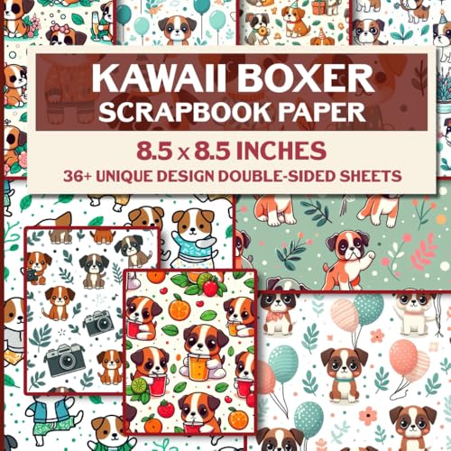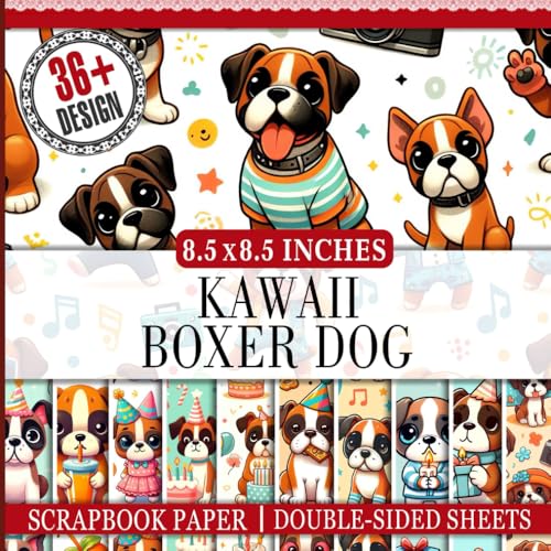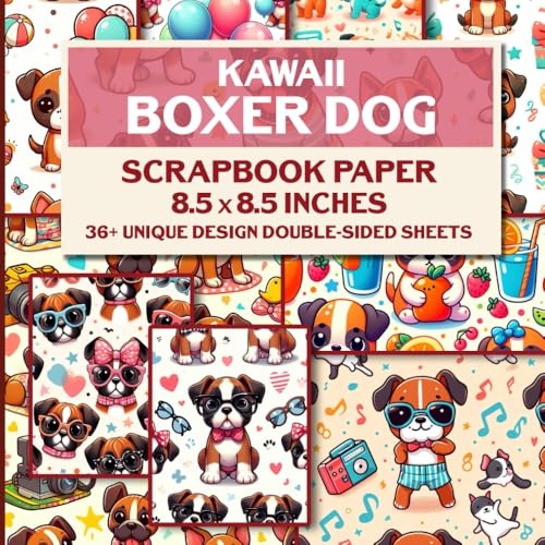 Kawaii Boxer Dog Scrapbook Paper: 36 Patterned Double-Sided Decorative Sheets, 85" x 85" | Ideal for Crafting, Junk Journals, and DIY Projects