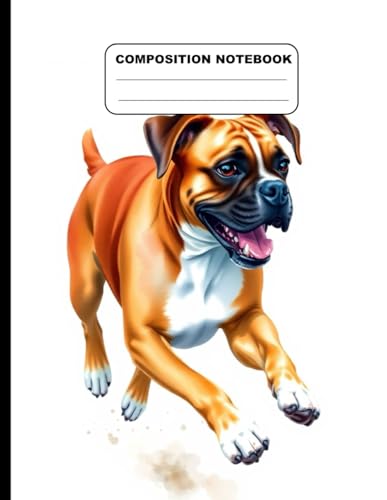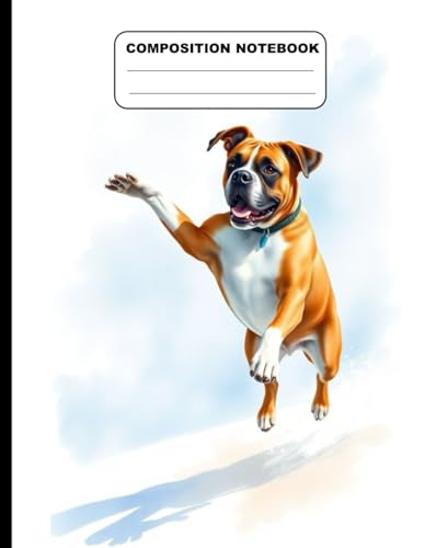 Drawing Of A Boxer Dog Jumping College Ruled Composition NoteBook: Glossy Paperback Notebook: 120 Pages Size 8.5 Inches By 11 Inches