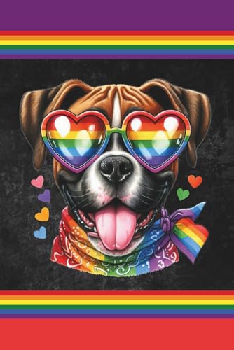 LGTBQ+ Pride Boxer Dog with rainbow glasses: Blank 120 Page Lined Journal/Notebook/Poetry/Lyric Book
