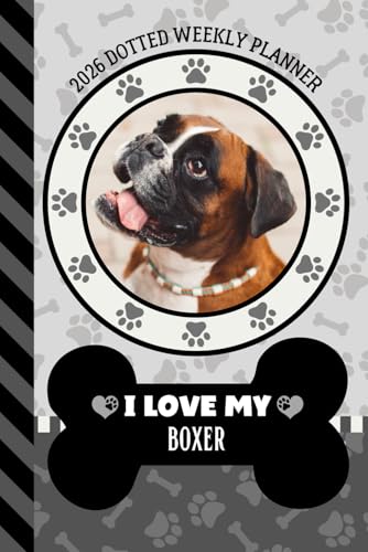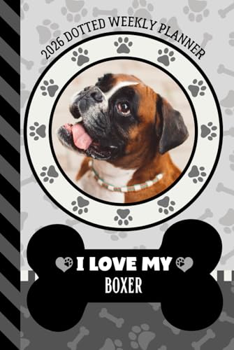 2026 Dotted Weekly Planner: Hardcover / Dated 6x9 Vertical Weekday Layout With Dot Grid Note Pages / Habit Tracker / Jan - Dec / Small Personal Diary / I Love My Boxer Dog Art Cover