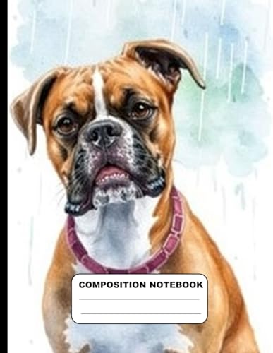 Boxer Dog Enjoying The Rain College Ruled Composition NoteBook: Glossy Paperback Notebook: 120 Pages Size 8.5 Inches By 11 Inches