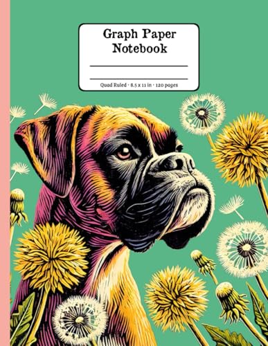 Boxer Dog Days with Dandelion Whispers Floral Quad-Ruled 1/4 Graph Paper Notebook: Boxer Dog Dandelion Flowers Floral Diary Journal Notebook; 4x4 (4 Squares per Inch) 8.5x11 inch with 120 Grid Page