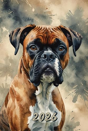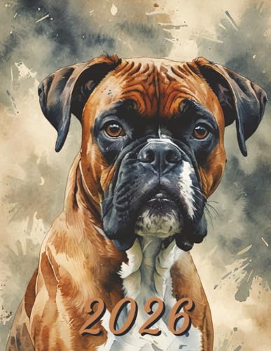2026: Large Monthly Calendar Planner – Watercolor Boxer Dog