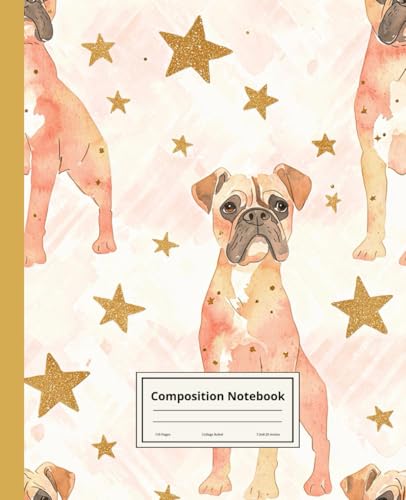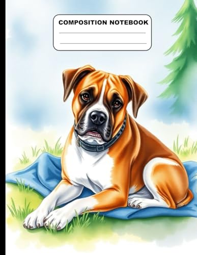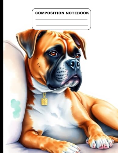 Composition Notebook College Ruled: Boxer Dog Illustration | Cute Dog Breed Journal For School, College, Office, Work | Wide Lined