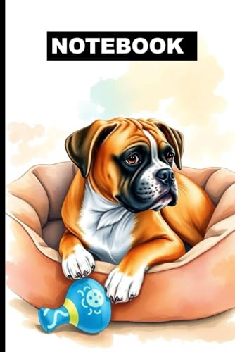 Boxer In Dog Bed With Favorite Toy Notebook: Matte Paperback Notebook Dog Theme: 120 Pages Size 6 inches x 9 inches