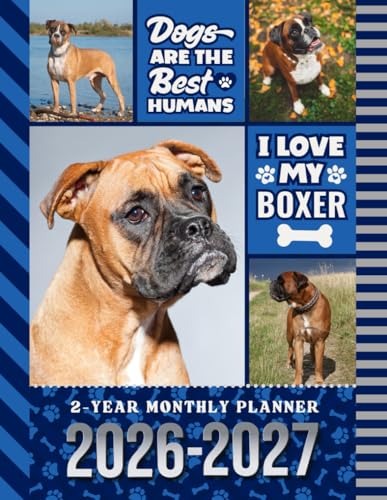 2-Year Monthly Planner 2026-2027: Hardcover / 8.5x11 Dated Organizer With 100 Blank College-Ruled Notebook Pages Combo / 24-Month Schedule / Boxer Dog Art Pattern Cover