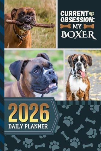 2026 Daily Planner: Hardcover / One Page Per Day / 6x9 Dated Organizer With Hourly Diary - 1 Hour Time Slots / To Do List / Notes Section / Scheduling Gift / Boxer Dog Art Cover