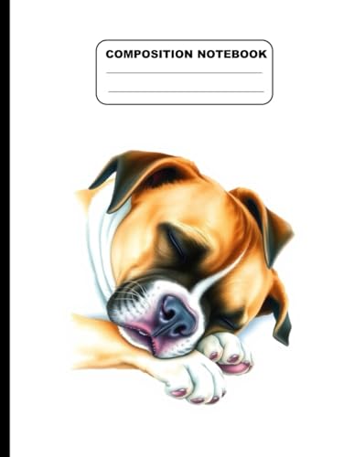 Drawing Of A Boxer Dog Sleeping Peacefully College Ruled Composition NoteBook: Glossy Paperback Notebook: 120 Pages Size 8.5 Inches By 11 Inches