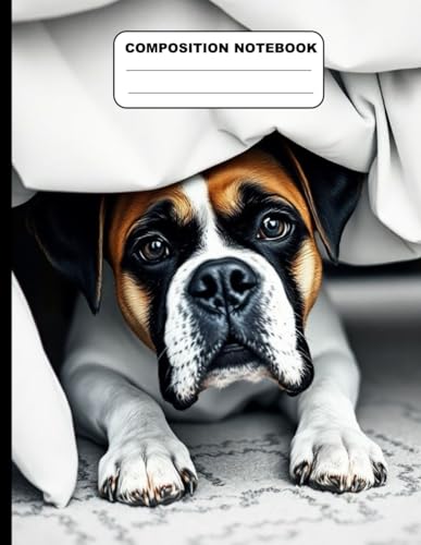 Drawing Of A Boxer Dog Hiding Under The Bed College Ruled Composition NoteBook: Glossy Paperback Notebook: 120 Pages Size 8.5 Inches By 11 Inches