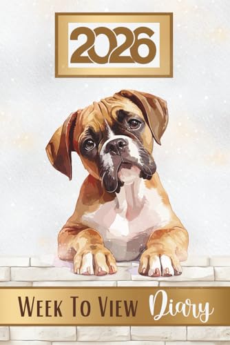 Week To View Diary 2026: Fawn, Tan & Black Boxer Dog, Weekly & Monthly Planner & Organiser, Pawsome For Doggie Lovers & Pet Owners