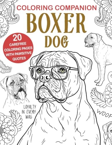 Coloring Companion Boxer Dog: Fun Mandalas & Hilarious Quotes | 20 Dog Illustrations for Relaxation and Stress Relief Activity Unique Gift