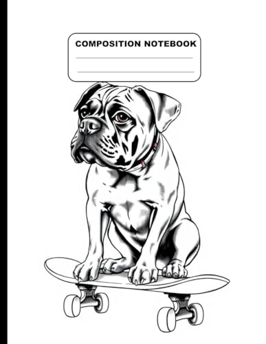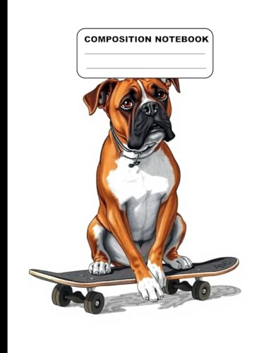 Drawing Of A Handsome Boxer Dog On Skateboard College Ruled Composition NoteBook: Glossy Paperback Notebook: 120 Pages Size 8.5 Inches By 11 Inches