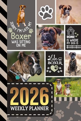 2026 Weekly Planner: Hardcover / 6x9 Dated Diary With To Do List - Habit Tracker - Notes Section / Agenda Gift / Boxer Dog - Funny Quote Animal Art Cover