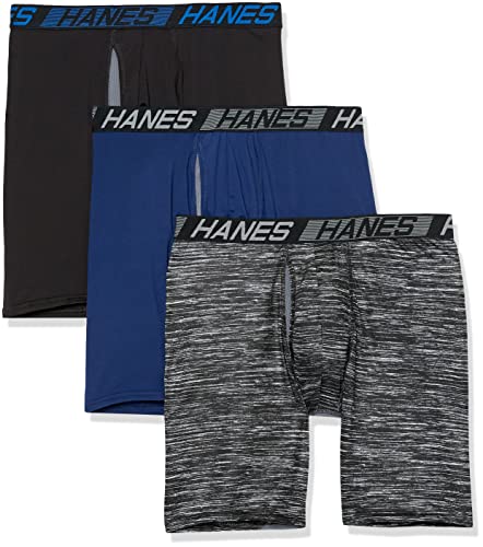 Hanes Men's Moves Performance Boxer Brief, Total Support Pouch, Regular/Trunk/Long Leg, 3-Pack, 6"