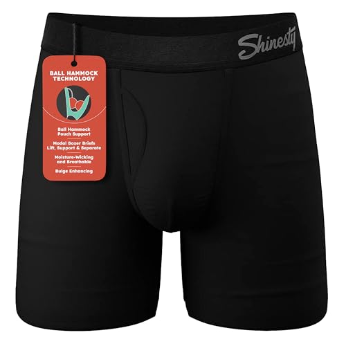 Shinesty Hammock Support Mens Underwear | Boxer Briefs Men with Fly | US XL Black