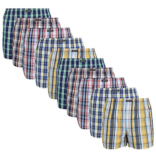 REMIXX Amerikanska boxershorts för män vävda rutiga bomull, 10-pack. Varning: Slumpmässig blandning av de senaste modellerna och färgerna!, Set2, M